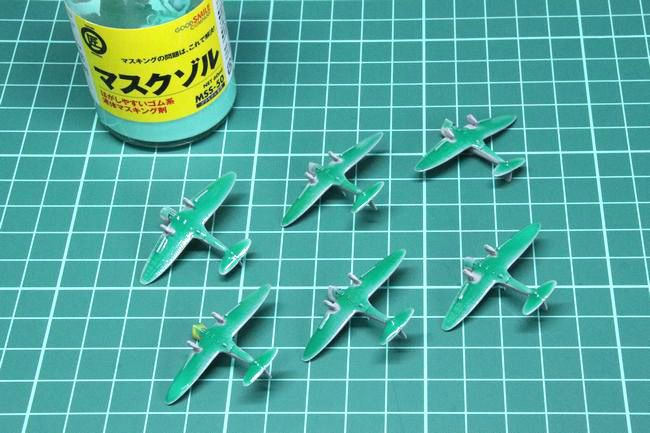 続いて上面色の塗装に移りますが、下面はゾルでマスキングしておくとスムーズです。ここでは、グッドスマイルの「マスクゾル」を使用しました。