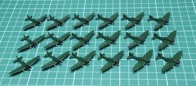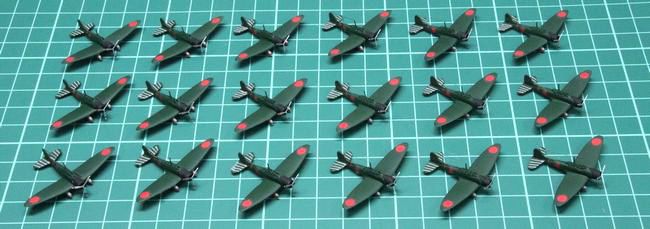 これで、ミッドウェー第一次攻撃隊の九九式艦上爆撃機×18機が揃いました。数が多いので、仕上がりのレベルを整えるのに苦労します。