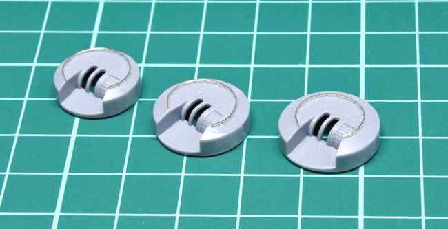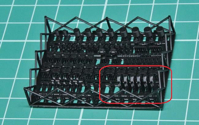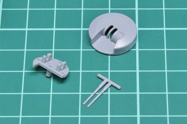 シップヤードワークスのパーツには、キットでは省略されている防水キャンパスが付属しています。パーツは3Dプリント製で、弾薬箱やホースリールと同じブロックに用意されていますので、まずはこれを切り出しました。