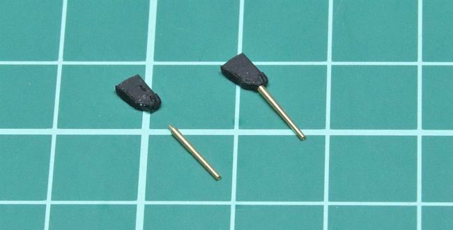 砲身は、シップヤードワークスのセットに付属している真鍮挽物パーツを使用します。シールド無し高角砲と同様に、穴径とダボ径もジャストフィットで安心感の高い組み合わせでした。