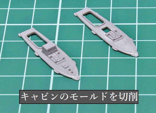 いっぽう、上部構造物のディテールアップにはシップヤードワークスのエッチングパーツを使用しました。これは、キャビンのエッチング化に備えてキットパーツ側のモールドを切削した様子です。