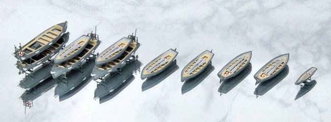 最後に、赤城に搭載する艦載艇を並べた様子。一航戦の旗艦だけあって、艦載艇は隻数、種類共に非常に豊富な印象です。
