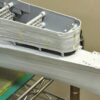 今回は全体前後のデッキを仕上げていきます。これは艦尾の短艇甲板で、リノリウムの押さえ押さえ金具と水密扉、モールドを完全に落とした状態から始まります。(画像では未処理ですが、チェーンストッパーも削りました)