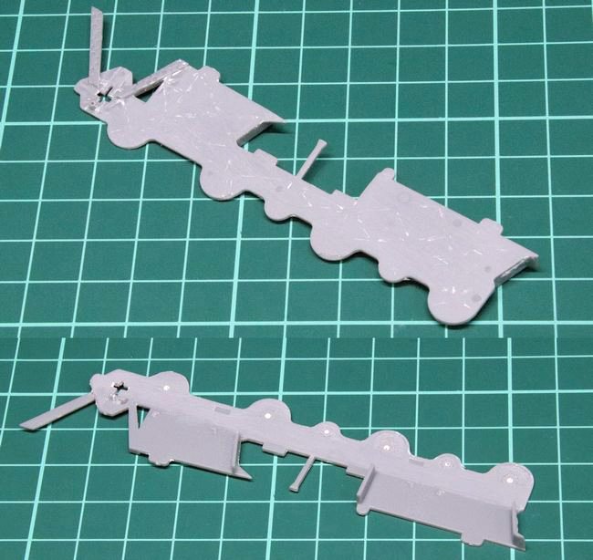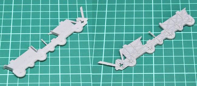 このモールド、そのままでも充分に繊細ではあるのですが、今回はシップヤードワークスのエッチングに切り替える関係で、全てのモールドを削り落としました。