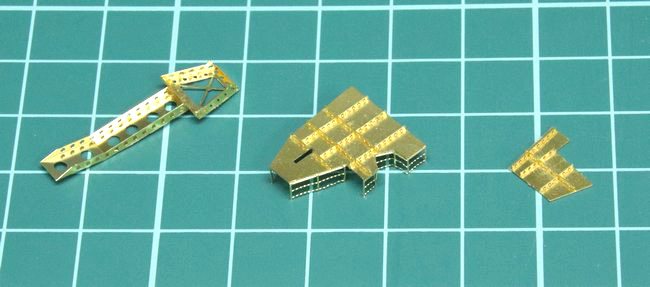 同じタイミングで、起倒式マストの取り付けブラケットも製作しました。これもシップヤードワークスのエッチングで初めて表現する部分で、裏側のディテールなども非常に繊細なものとなりました。