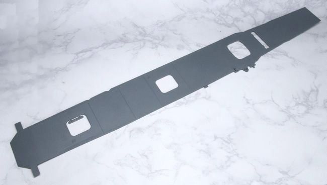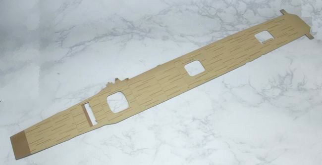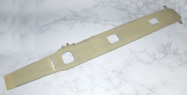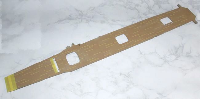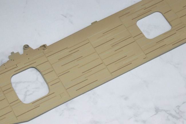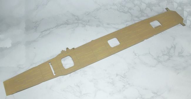 続いては飛行甲板の塗装に移ります。フジミキットの飛行甲板は一体で成形されており、非常に薄くて実感的です。