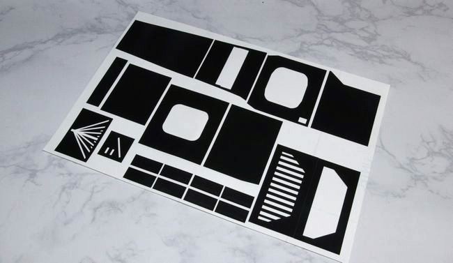 続いては鉄甲板部の塗り分けに進みます。ここで役に立つのが、モデルファクトリーハイギヤードの専用マスキングシート。1/350航空母艦「翔鶴」用は、このような鉄甲板部の専用シートを用意しています。