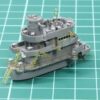 艦橋とマストも取り付け、空中線にはモデルカステンの「メタルリギング0.3号」を使用しました。9mカッターは(脱落防止のため)外部通路に軽く点付けし、クライプバンドは0.4mm幅の細切りマスキングテープを着色して再現しています。