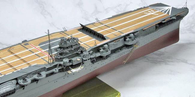 画像には写っていませんが、スクリューを取り付け、菊花紋章を着色すれば「翔鶴」本体は無事完成です。残す作業は艦載機の製作と固定ですが、明日は自衛隊からの表彰の話題をお知らせします。