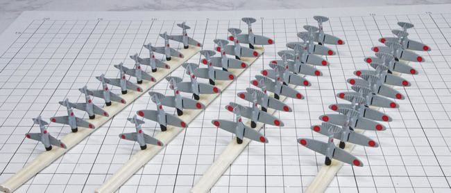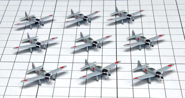 艦載機は飛行甲板に固定しています。配置は事前になんども微調整を繰り返し、バランスよく見える位置を探りながら決めました。これほどの機数の艦載機が、一斉に発動機を唸らせている様子はどのようだったのか? と想像が膨らみます。