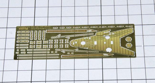 航空作業甲板は、木製甲板に付属のエッチングを使用しました。軌条と旋回盤などのモールドを予め削ってから接着します。