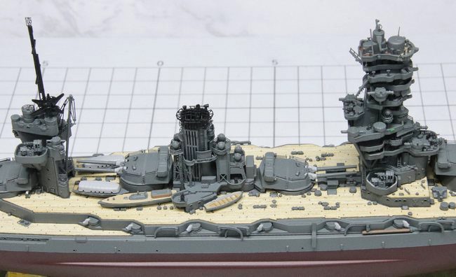 前部艦橋を取り付けた様子。破損防止のために後付けにしていたアンテナ類も、このタイミングで取り付けました。