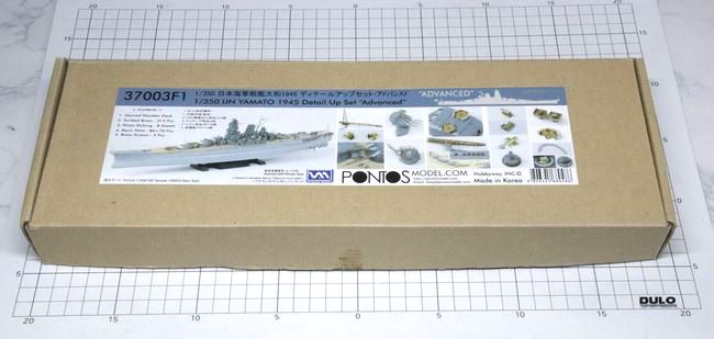 ディテールアップパーツには、複数のスーパーディテールセットを使用します。これは、ポントスモデルの1/350戦艦「大和」用パーツセットの基本セットで、品番37003F1「1/350日本海軍戦艦大和 1945 ディテールアップパーツ アドバンスド」。ポントスモデルのディテールアップセットは、エッチングに加えてベテランモデルのレジンパーツのほか、真鍮挽物パーツが充実している点が特長です。