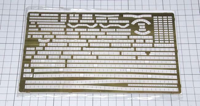 Genine modelのエッチングの2点目は、高角砲ブルワークの木製の足場を再現したパーツです。こう見えて意外とパーツ数が多く、組み立てに手間がかかる製品ですが、非常にメリハリのある仕上げになりますので、個人的にも気に入っています。