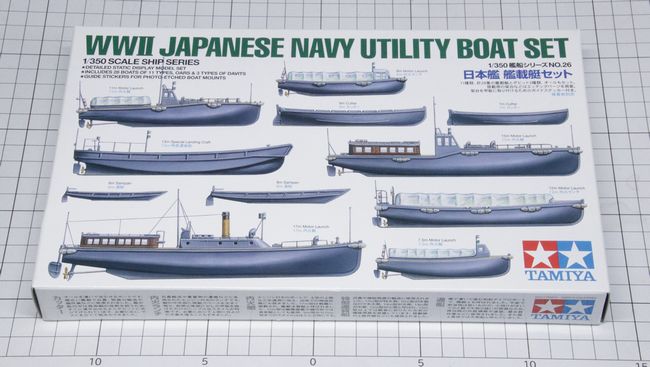 艦載艇は、今回は標準搭載の内火ランチに加え、15mと17mの内火艇の搭載をご用命いただいているため、タミヤ純正の艦載艇セットを使用します。