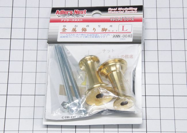 ディスプレイについては、アドラーズネストの真鍮飾り脚のLサイズを使用します。この飾り脚、残念ながらメーカーの事情で既に生産中止となっており、事前に確保しておいたのは大正解でした。