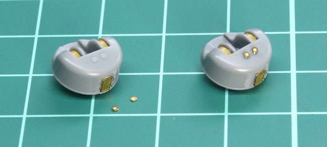 まずは、インフィニモデルのエッチングから、シールド前面の観測窓のシャッターを取り付けます。A型~D型までのシールドがあるなかで、C型のみはフィッティングがかなりタイトですので、ヤスリで少し幅を詰めてから接着しました。