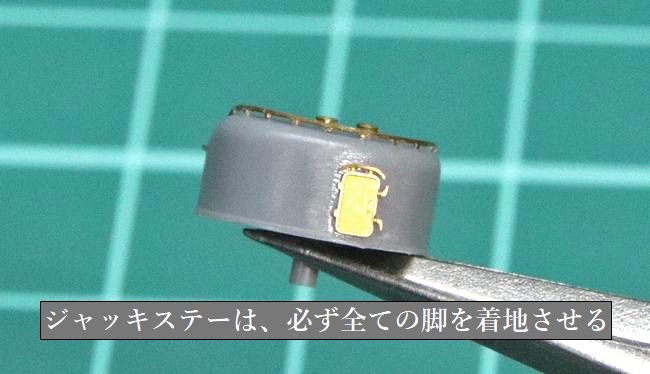 なお、ジャッキステーのパーツを取り付けるさいには、必ず全ての脚を接着するようにしています。少しでも浮きがあると目立ってしまうので、ゼリー状瞬間接着剤の点付けし、位置合わせが済んだ時点で流し込みセメントを軽く流し、瞬着を溶かして隙間を埋める要領で処理しています。