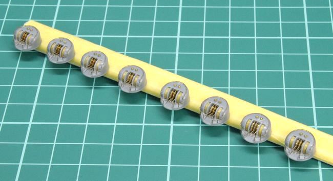 これがジャッキステーのエッチング全景。艦船模型用のジャッキステーは、作業性向上のため、ほとんどが少し高めに設定されているのですが、インフィニモデルのパーツは実物に近い低めのサイズとなっています。実感的ではあるのですが、丸みを持たせる作業の際に捩じれる可能性が高く、接着剤や塗膜で埋めてしまう恐れもあるので、使用難度は少々高めです。