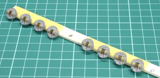 続いて、天井のベンチの取り付けです。ここはモールドを敢えて残し、上からエッチングを貼り付ける方が「天面から少し浮いた状態」になって実感がアップします。