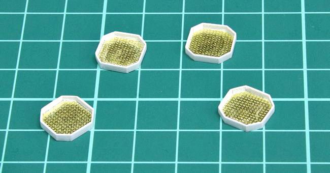 これに、先ほどのフライホークの滑り止めパターンを接着します。少し大きめに切り出したエッチングを貼り、プラ製ベースに合わせてトリミングしていくと上手くいきます。