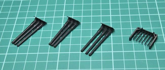 このパーツは主砲身と副砲身がセットになっており、副砲身は、副砲製作の項で紹介した砲塔本体に付属しているパーツと同じです。