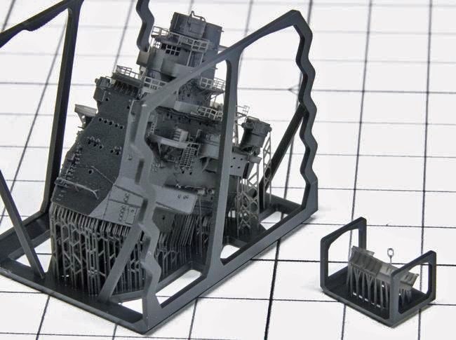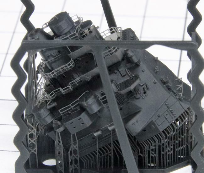 煙突に続いてご紹介するのは前部艦橋です。今回使用する3Dプリントパーツの中でも最も入り組んだ構成となっており、ディテールアップ効果の特に高い部分になります。