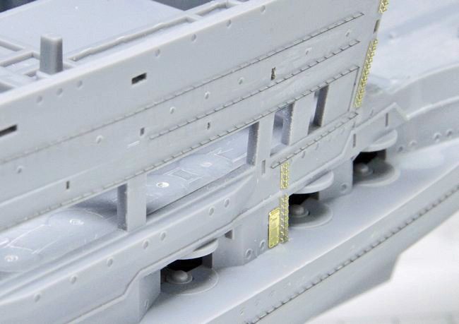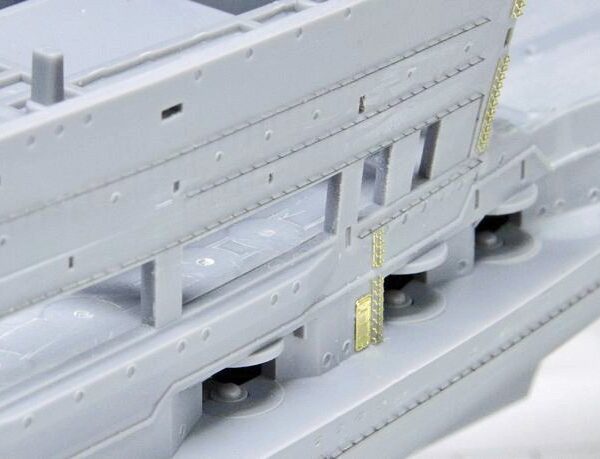 艦船模型製作代行のご依頼をいただき、1/350航空母艦「赤城」を製作中です。 1/350航空母艦「赤城」船体 その7 前回の左舷側に引き続き、今回は右舷側のジャッキステーを取り付けていきます。まずは艦首周りのクローズアップ。格納庫前端部は最後に仕上げる手順で、まずは舷側を仕上げました。 1/350航空母艦「赤城」船体 その7 右舷中央部。ここは巨大な煙突が備わるため、格納庫周りのジャッキステーは少なめですが、舷側部分は(最も多いところで)3段重ねで配置されています。 1/350航空母艦「赤城」船体 その7 …