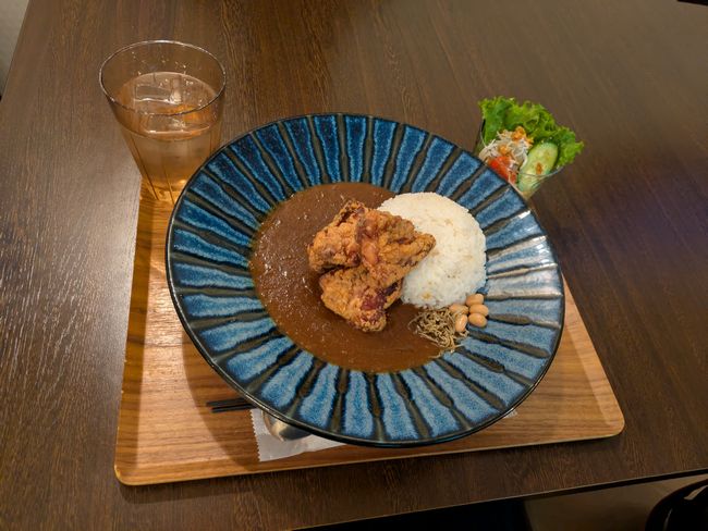 今回は、団体メニューとしてカレーライスをご用意いただきました。海軍カレーというよりは、お洒落カフェのカレーといったイメージで、あまり辛くはなく、鶏の唐揚げがトッピングとして載せられていました。