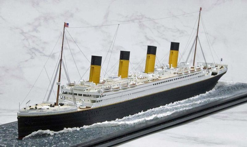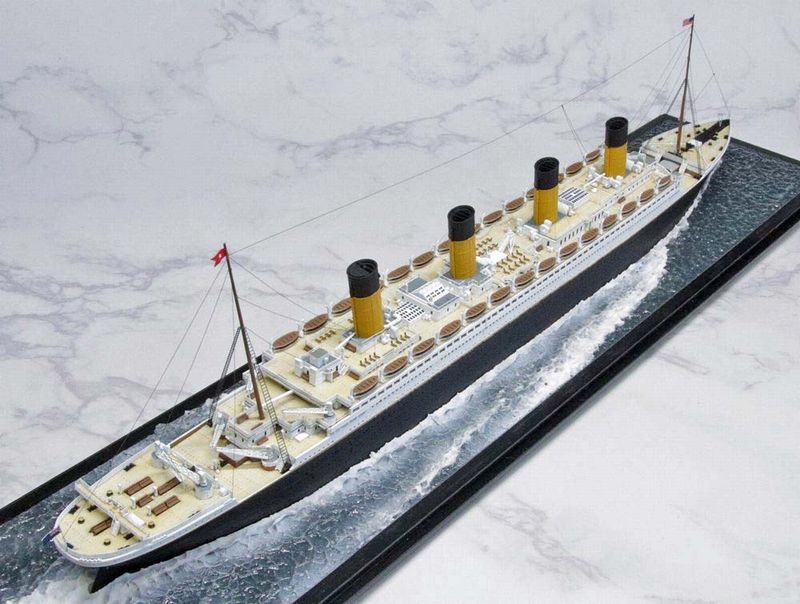 商船模型の製作代行は、20年以上前から私のブログをご覧になっている客船好きのお客さまからのご依頼で、1/700「RMS オリンピック、タイタニック」の姉妹を製作しました。キットは最新のホビーボス製で、中程度のディテールアップでも充分に見応えのするディテールが表現されており、これも個人的にいつか製作したいと思わせる、面白い製品でした。