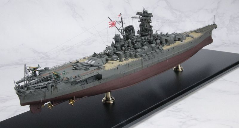 艦船模型製作代行にて製作。ピットロードの大和は通算5作目で、純正パーツとシップヤードワークスのセット、更にはアドラーズやナノドレッドの各パーツを大量投入。木製台座付きの高級仕上げとなりました。