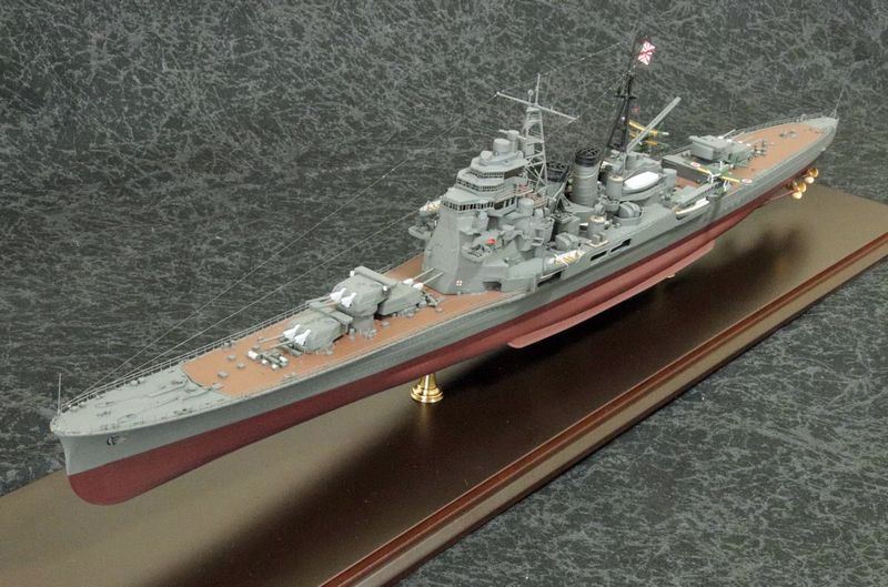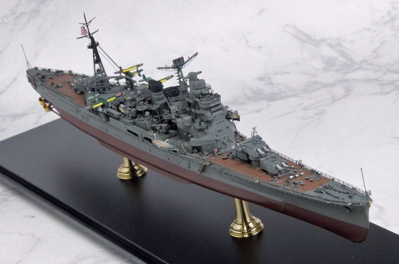 アオシマキットをベースに、アオシマ純正エッチングパーツと、高雄型用共通手摺りを組みました。オーソドックスなディテールアップ仕上げで、ミュージアムモデル的な清潔感を重視しております