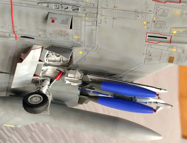 機体下面やウェポン、脚なども丁寧に仕上げました。鮮やかなブルー塗装の演習弾がワンポイントです。