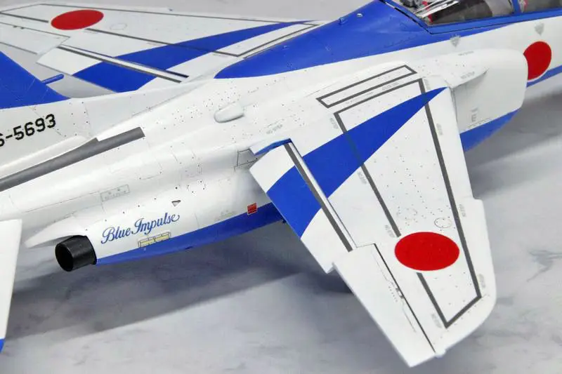 機体下面の塗り分けも、ブルーインパルスT-4の魅力です。上下が反転した塗り分けということで、鏡の上に載せて展示するのも面白そうです。
