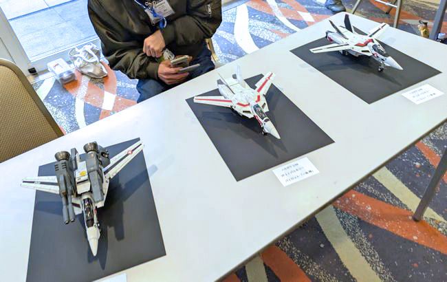 こちらも個人参加組の告使天使さんの作品群。1/700海上自衛隊護衛艦は室内灯が点灯するほか、レーダーの回転ギミックなどもあり。写真には写っていませんが、ローター回転と電飾、そしてご自身で開発&販売されているオリジナルパーツを組み込んだヘリコプターが注目を集めていました。