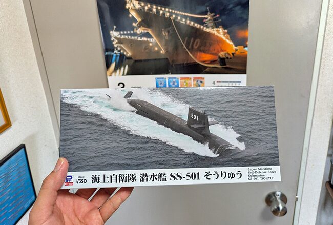 また、展示会ではモデラー同士の交流のほか、いつも温かく応援いただいているお客さまにわざわざ足をお運びいただき、あらたな製作依頼のキットをお預かりいたしました。(ピットロード1/350海上自衛隊潜水艦「そうりゅう型」)
