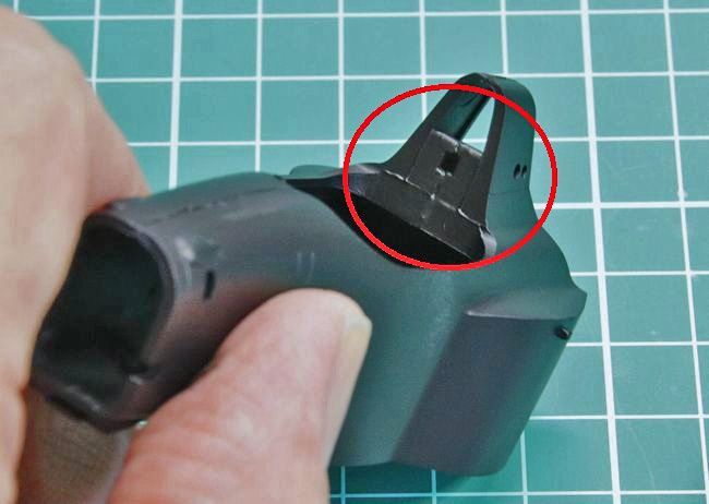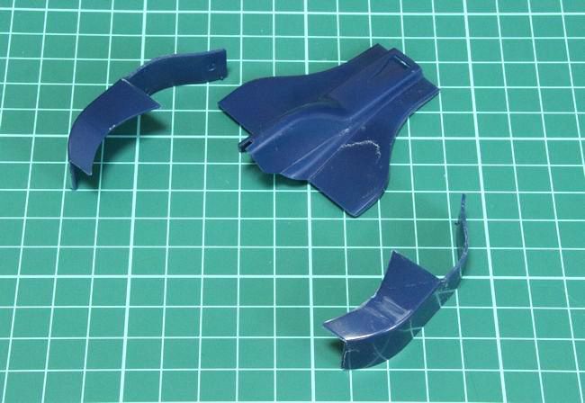 あとは軽く黒サフを吹き、流し込みセメントで圧着した際に盛り上がったプラをサンディングすれば、合わせ目処理は、ほぼ完了です。