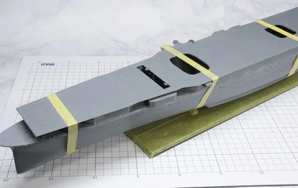 これで、塗装前の船体&飛行甲板の処理が終わりました。次回からはこれらの塗り分けに進みます。